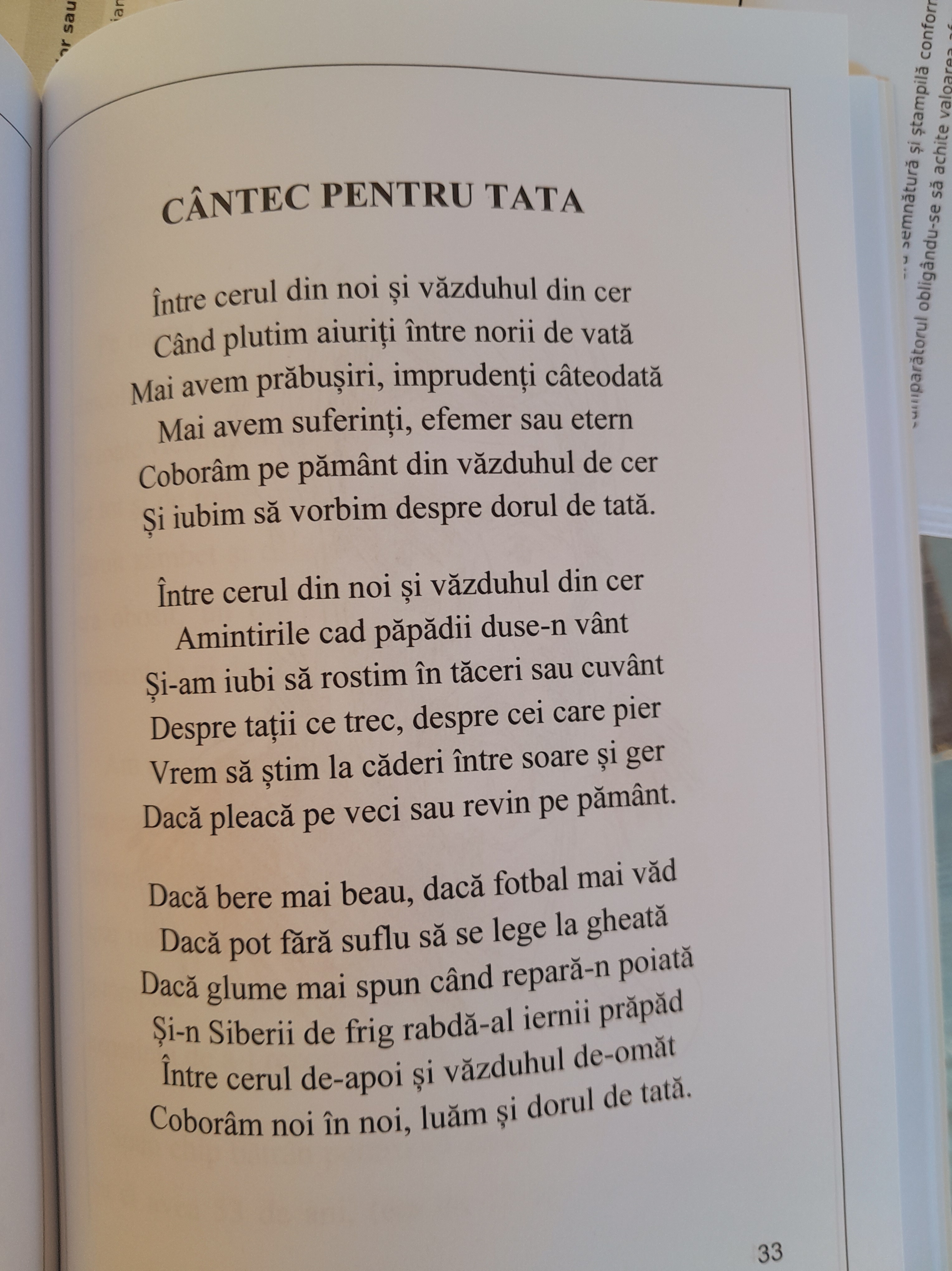 Lirica din carte atinge o dimensiune a cotidianului dar rămâne autentică, sensibilă, transmite emoție și schițează portretul necunoscut al autorului, iar proza scurtă completează un univers ascetic, cu imagini vii decupate din amintirile păstrate cu sfințenie.