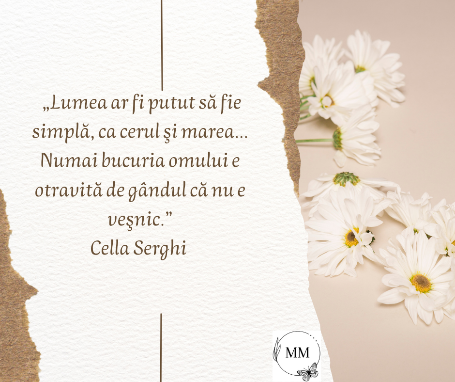 Apoi se întoarse si începu sa privească îndelung ființele acelea necunoscute care stăteau pe scaune în jurul unor mese pătrate, cu privirile pierdute, scufundați într-o lume doar de ei știută. Înțelegea, ca fiecare avea povestea lui, romanul său…