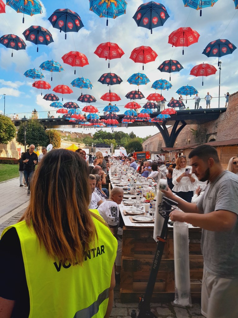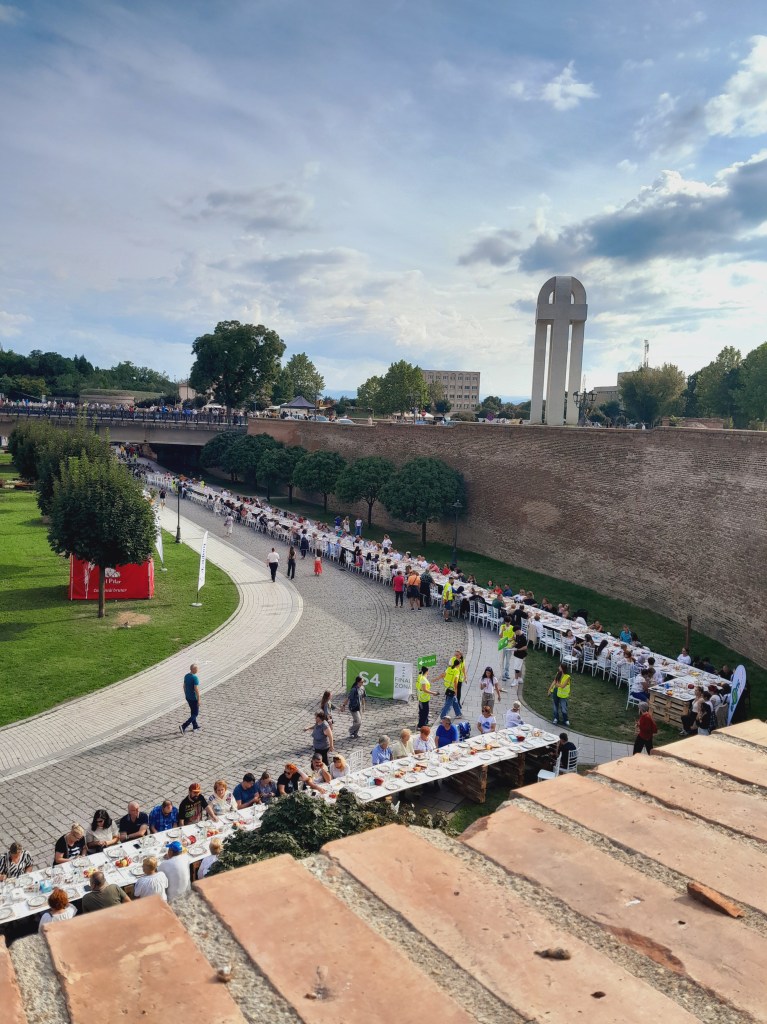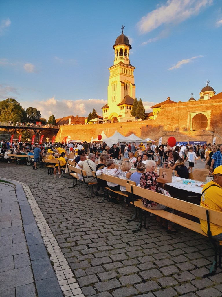 În perioada 10 – 13 septembrie Șanțurile Cetății Alba Carolina s-au pregătit pentru a intra în Guinness World Records cu cea mai lungă masă din materiale reciclabile de 2,78 km, sub denumirea „Masa care unește”, la care s-au înscris 10.000 de persoane, din toate zonele României. Povestea acestui proiect a început de fapt în 2019 odată cu înființarea asociației Bloom The World, care și-a propus să adune în jurul meselor comunități diverse, organizând întâlniri culinare și evenimente culturale, în locuri inedite precum: Muntele Mic, în Munții Retezat sau Peștera Meziad. Alexa Vilcan, omul din spatele acestei organizații, și-a propus să deschidă o cale nouă către solidaritate prin colaborarea persoanelor provenite din diverse medii sociale pentru a promova patrimoniul cultural și gastronomic românesc. Anul acesta, și-a împlinit un vis, acela de a înscrie numele orașului Alba Iulia în Cartea Recordurilor.